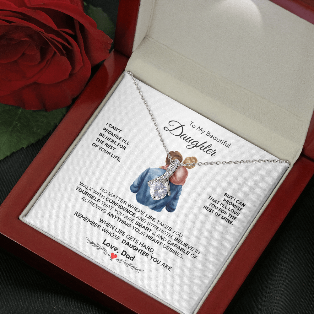 Imagine her reaction when she opens this stunning gift! The Alluring Beauty necklace features a petite ribbon shaped pendant that is sure to dazzle your special someone. Whether it's a birthday or anniversary, make sure to get her a gift she will love for years to come.